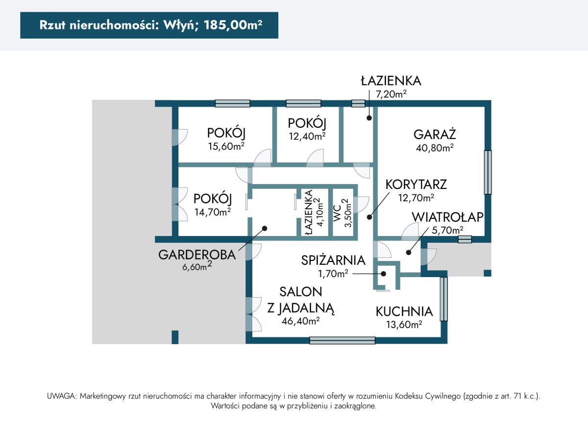 - Korytarz (12,7 m²)