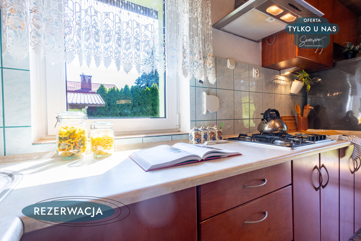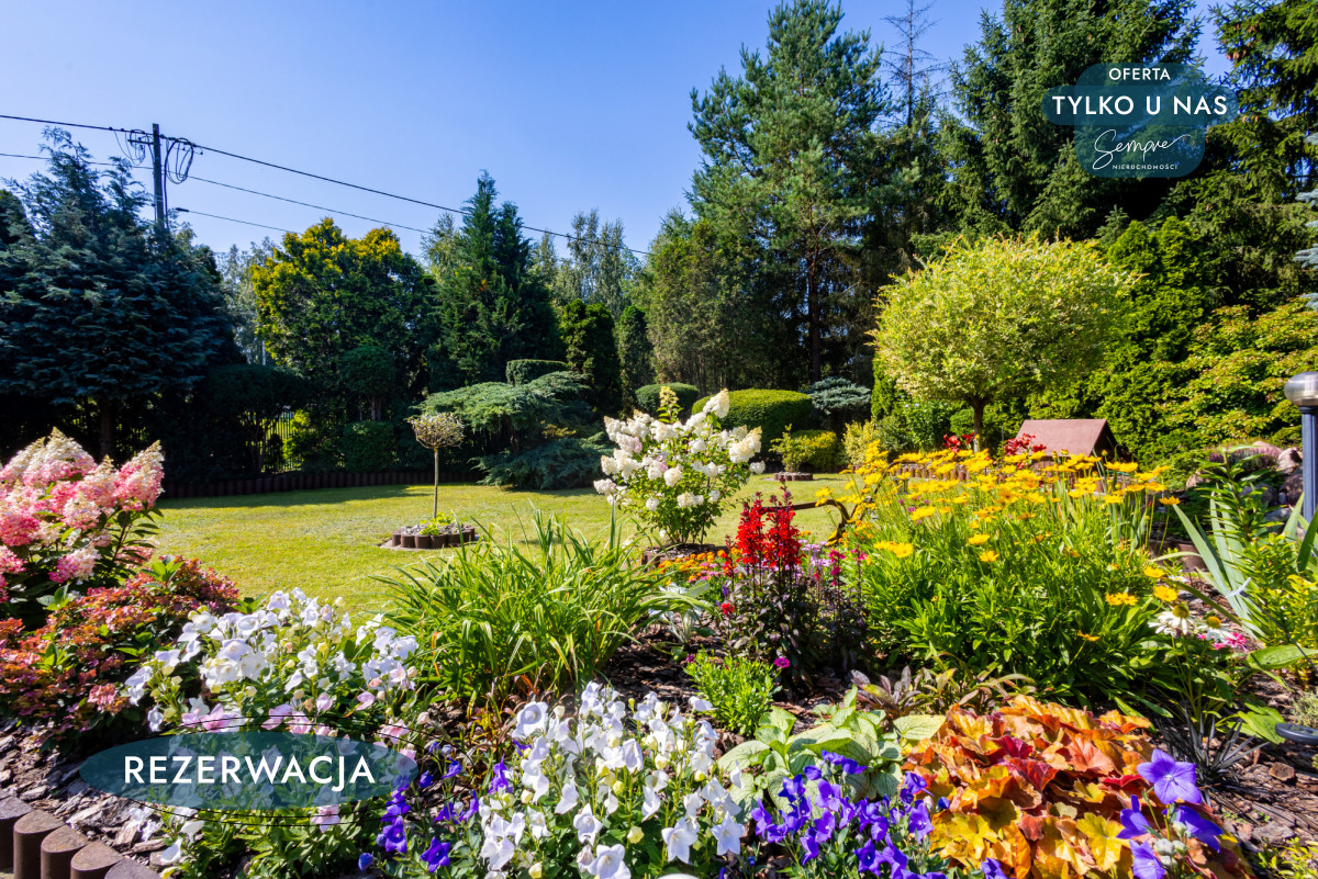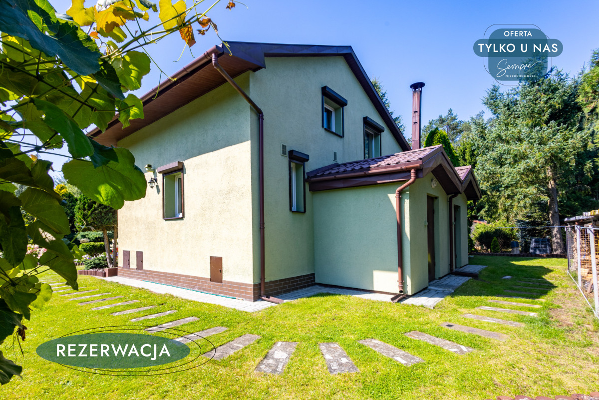 Działka jest w pełni ogrodzona, z bramą wjazdową i furtką. Wokół domu rozciąga się piękny, zadbany ogród oraz kilka krzewów owocowych, a praktyczne zaplecze gospodarcze obejmuje garaż z dodatkowym miejscem na rowery i sprzęt ogrodowy (o powierzchni 19 m²), wydzieloną przestrzeń na drewno i węgiel, a także pomieszczenia użytkowe, w tym kotłownię i pralnię z osobnym wejściem (ok.15,55 m²).