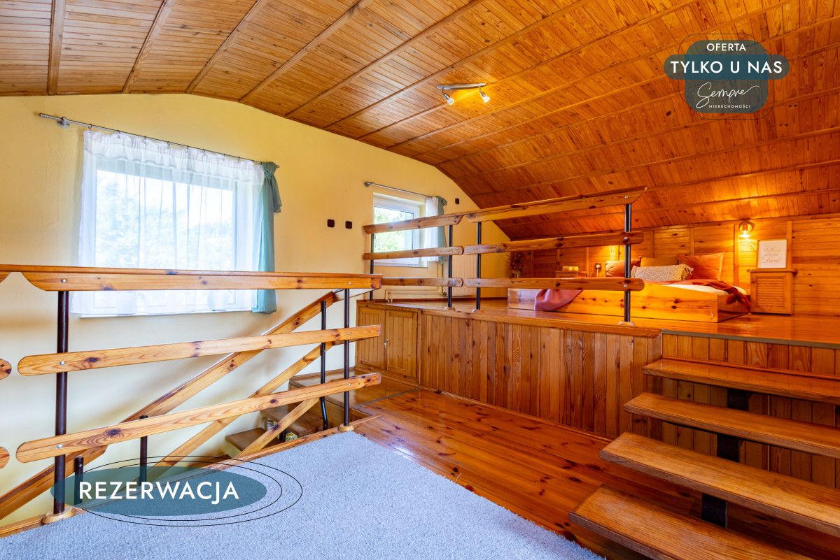 To nieruchomość, która łączy w sobie sielankowy klimat działki letniskowej z funkcjonalnością domu całorocznego.