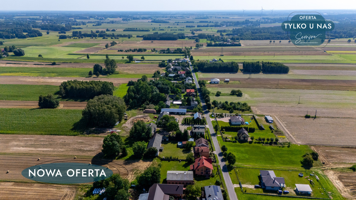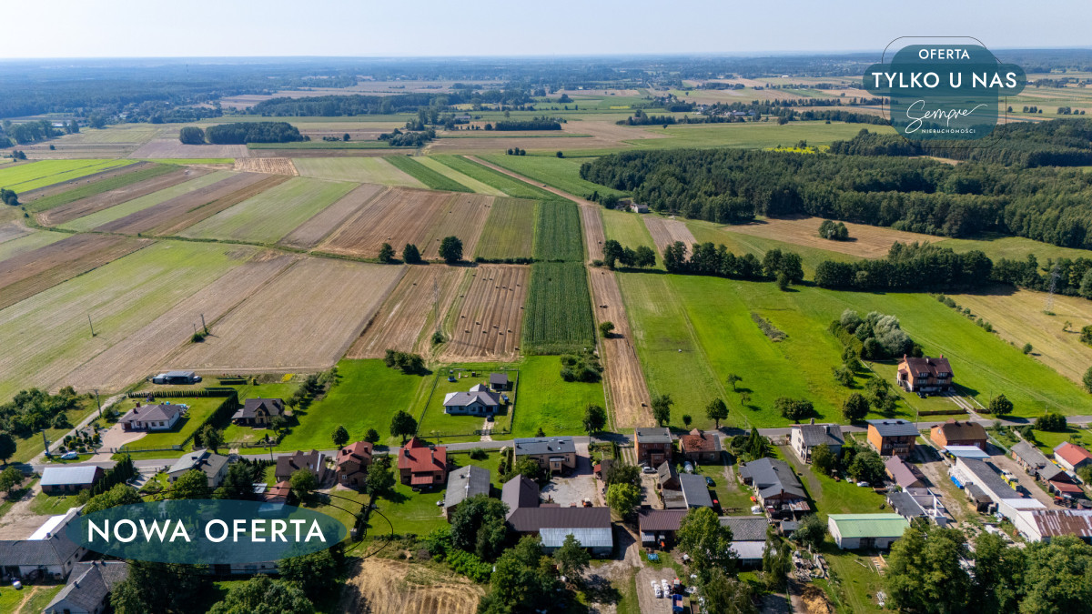 Nieruchomość posadowiona jest na malowniczej działce o powierzchni 1818 m² (wymiary ok. 38 m x 47 m), o regularnym kształcie prostokąta. Teren zadbany, spokojny, z przewagą zabudowy jednorodzinnej, idealny dla osób poszukujących ciszy i prywatności.