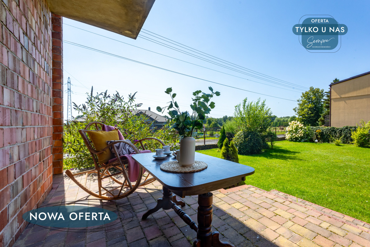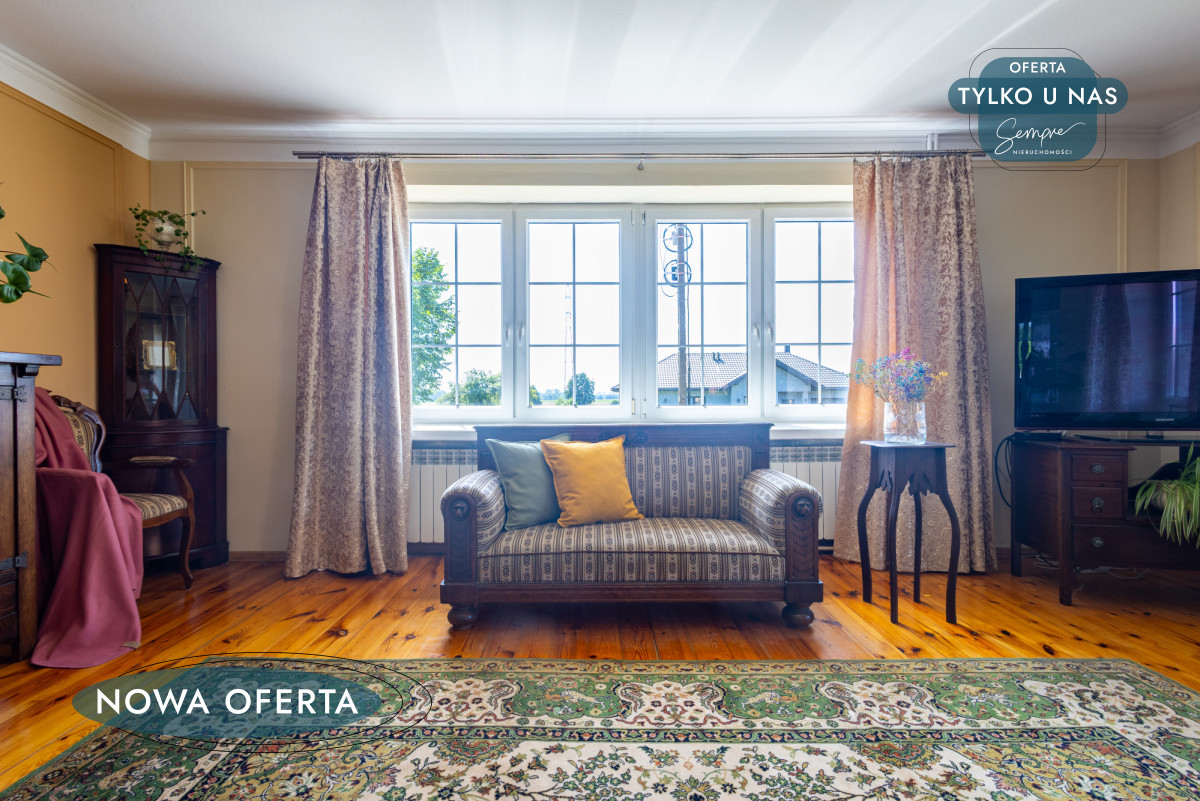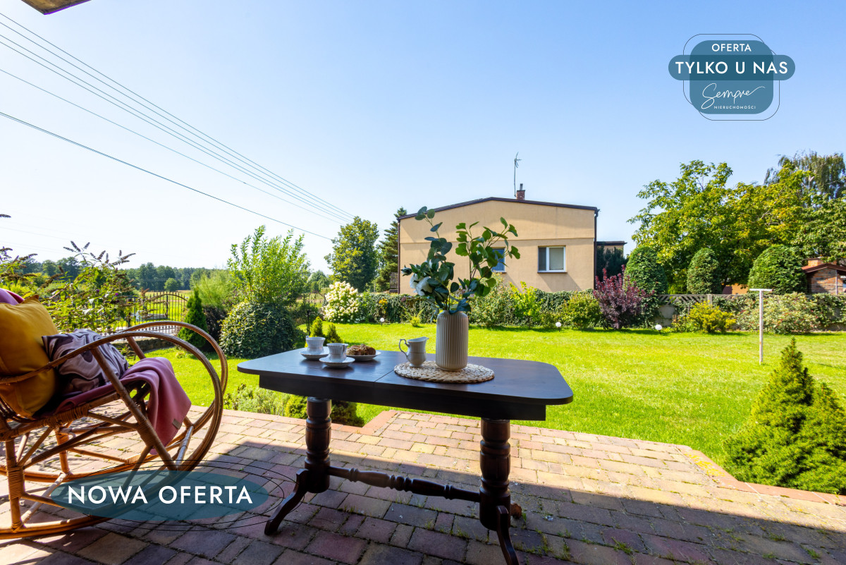 Na sprzedaż komfortowy dom o pow. użytkowej 189,98 m² (całkowita 268,21 m²) położony na pięknej działce 1818 m² w spokojnej okolicy, tuż obok Gajewnik, tylko 7 km od Zduńskiej Woli i Łasku.
