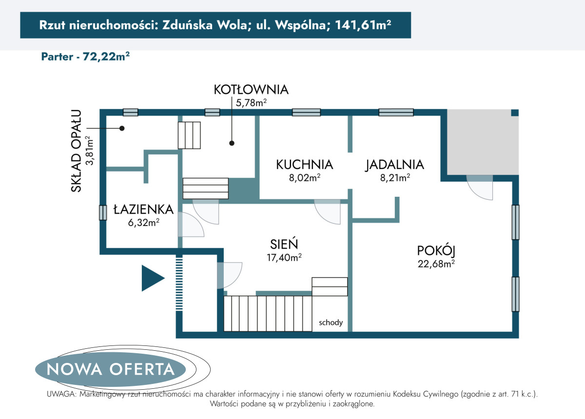 oraz kotłownia – 5,78mkw.