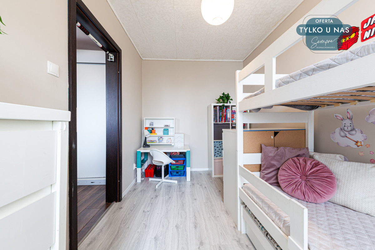Jasne pomieszczenie idealne na sypialnię, pokój dziecięcy lub gabinet. Balkon typu loggia stanowi dodatkową przestrzeń do relaksu.