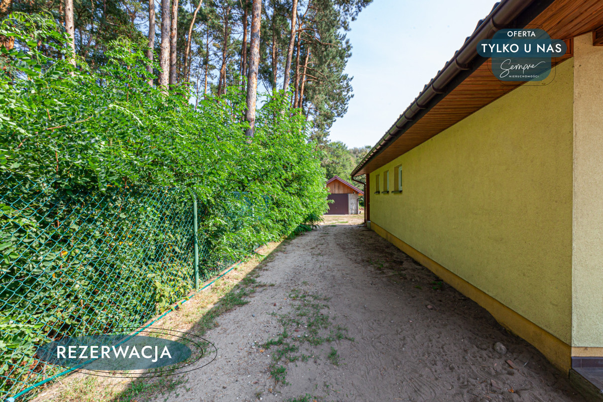 Na posesji, oprócz garażu z kanałem samochodowym 22 m², znajduje się drugi budynek, który może pełnić funkcję dodatkowego garażu, schowka na narzędzia ogrodnicze lub warsztatu. Teren posesji jest bardzo dobrze zagospodarowany – zadbany ogród z licznymi nasadzeniami i studnią to prawdziwa oaza spokoju, gdzie można cieszyć się bliskością natury i ciszą, jaką oferuje życie na wsi.