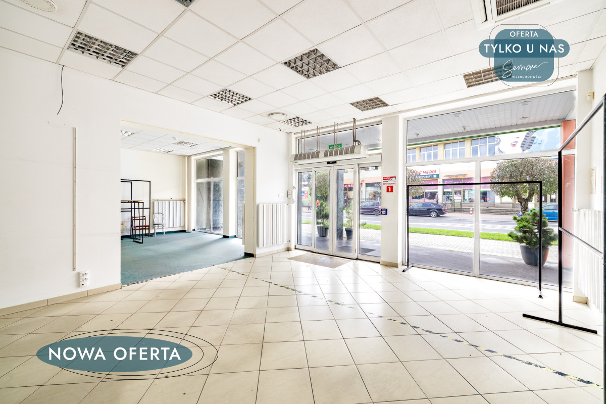 Duże, przeszklone witryny wychodzące na ruchliwą ulicę zapewniają świetną widoczność oraz naturalne doświetlenie wnętrza.