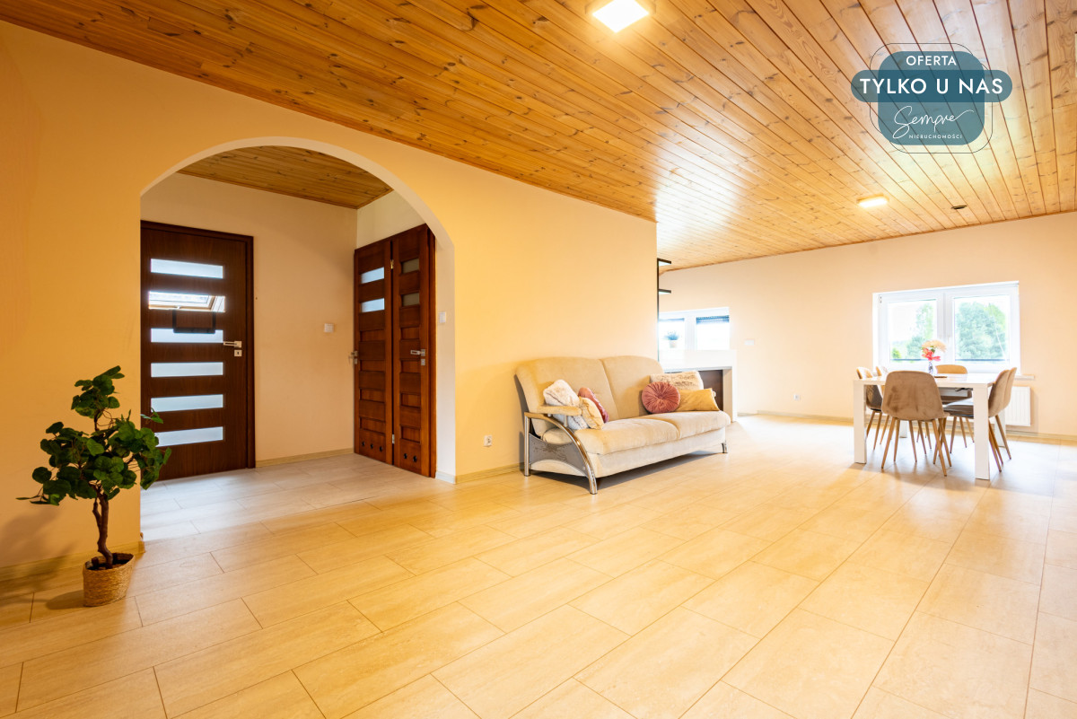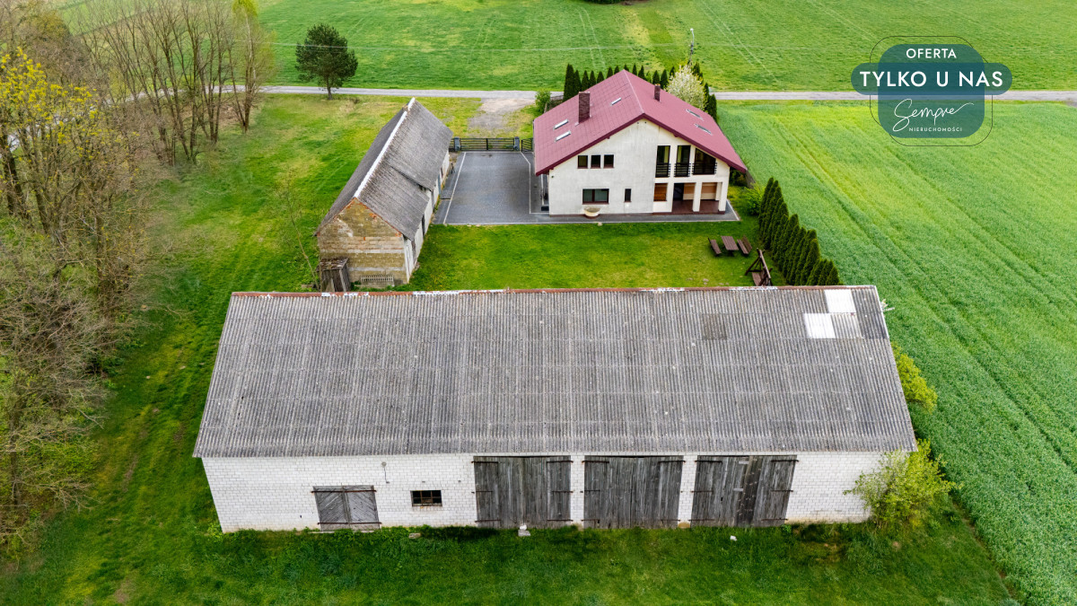 • monumentalna stodoła z wysokim stropem i solidną konstrukcją, która stanowi idealne płótno dla Twojej wyobraźni – od przestronnego warsztatu po galerię sztuki.
