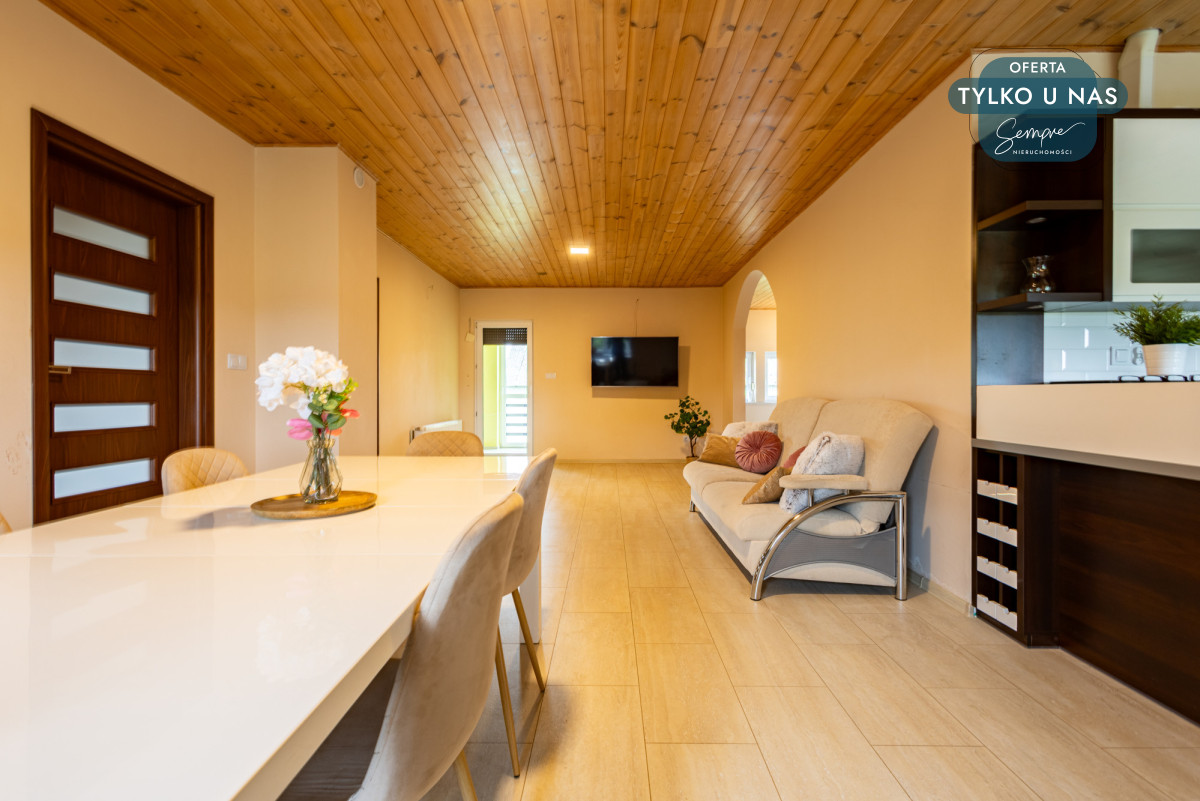 Dom o powierzchni użytkowej 212 mkw wybudowany został w latach 80 i nadbudowany w 2007 roku składa się z dwóch kondygnacji.