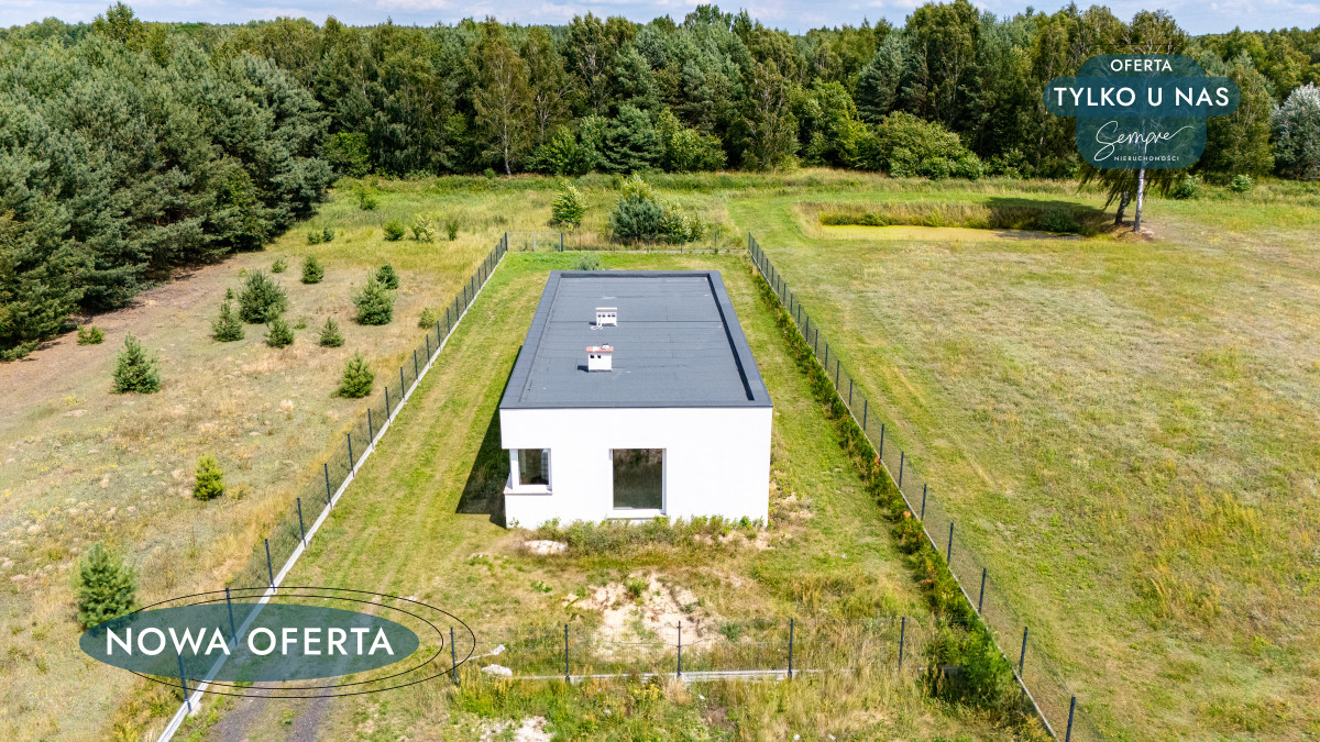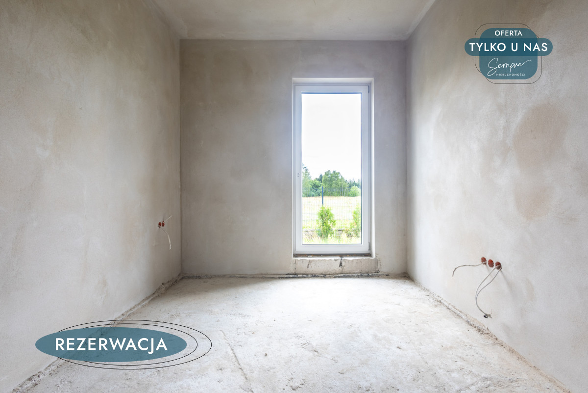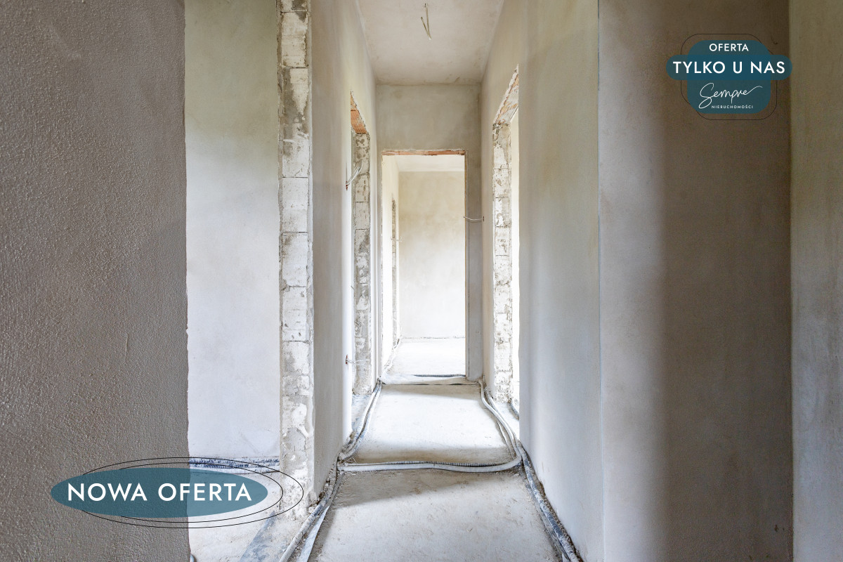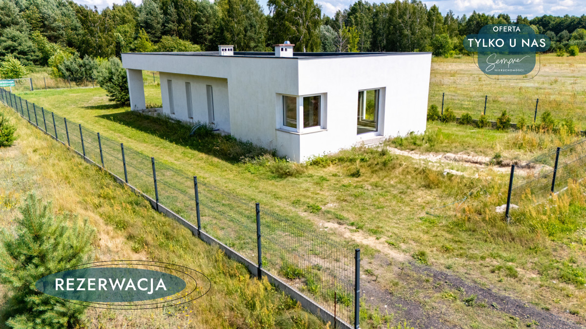 – Dom zbudowany w technologii tradycyjnej z betonu komórkowego Ytong – energooszczędny, trwały i zapewniający bardzo dobrą izolację termiczną. Budynek posiada już zamontowany dach. Dach płaski pokryty papą termozgrzewalną, drzwi wejściowe oraz stolarkę okienną. Media: prąd podłączony, woda z ujęcia własnego (studnia).