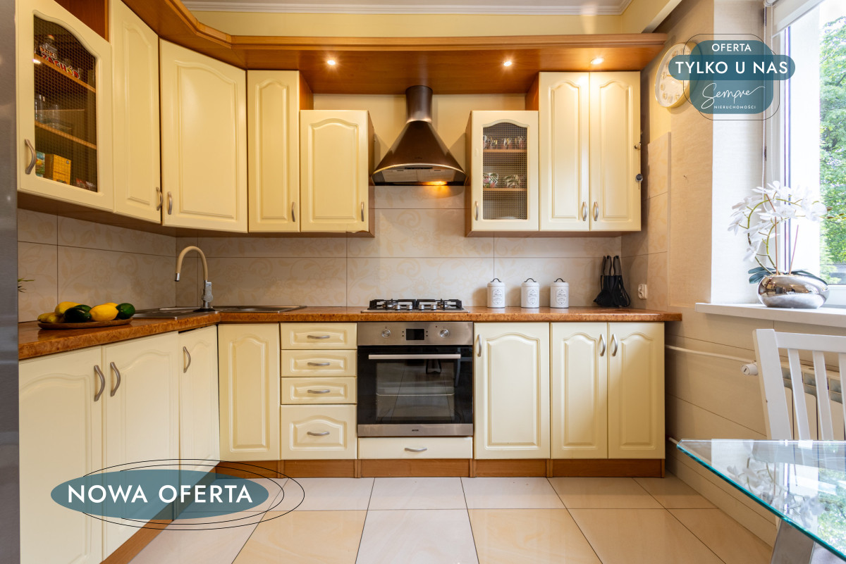 • jasna kuchnia z dużym oknem,