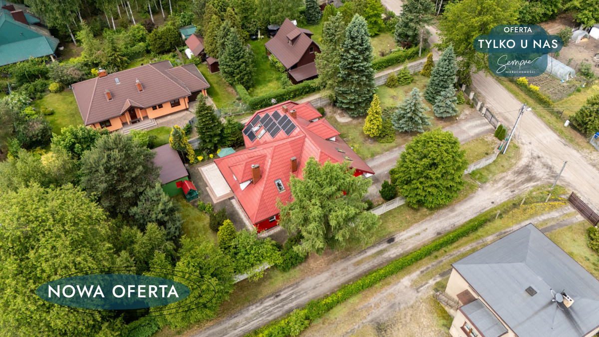 Dom o powierzchni użytkowej 180 m² (220 m² całkowitej) znajduje się na ogrodzonej działce o powierzchni 1377 m², otoczonej lasem i z dala od ruchliwych dróg. To idealne miejsce dla osób ceniących prywatność, naturę oraz wygodny dojazd do Łodzi i Zgierza, przy zachowaniu świetnego dostępu do autostrady.