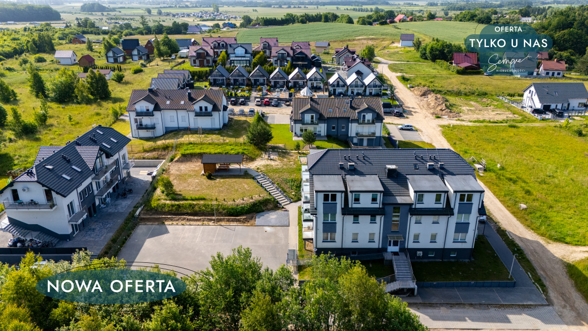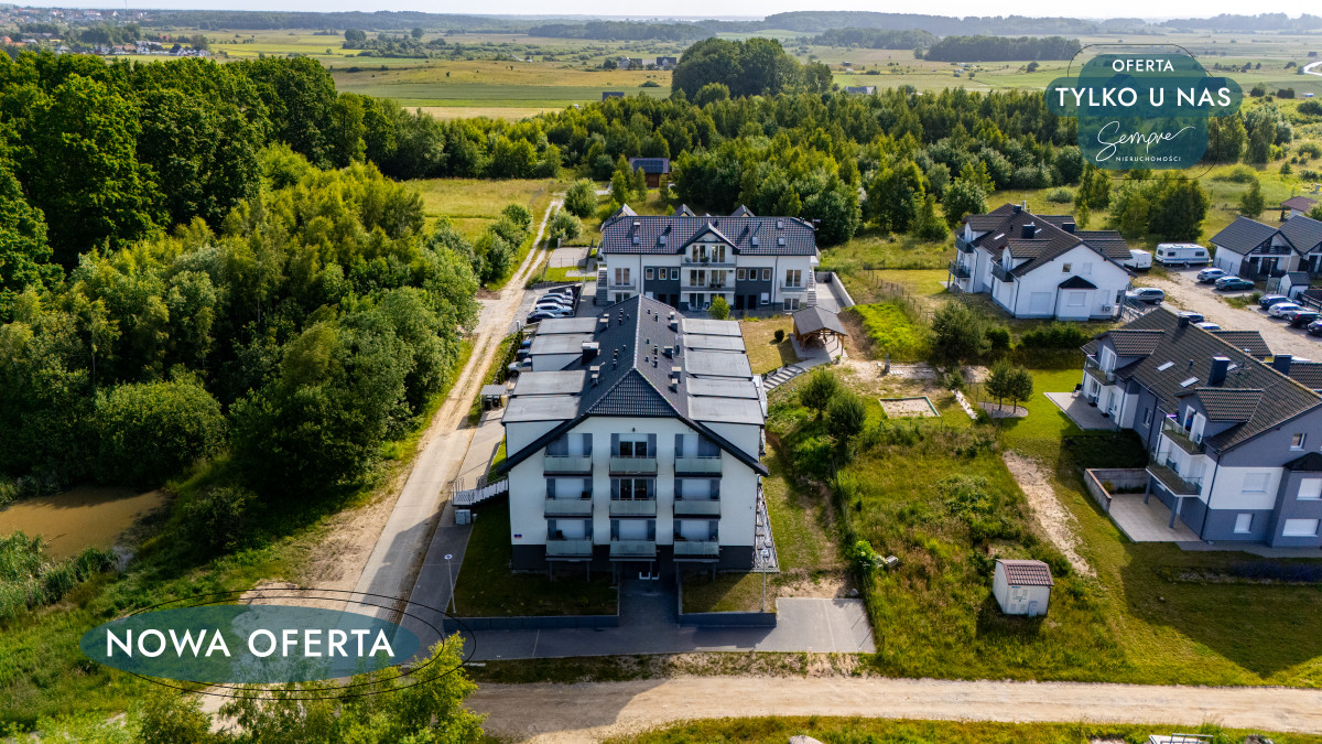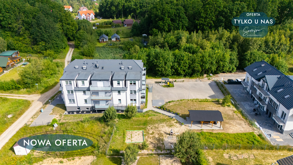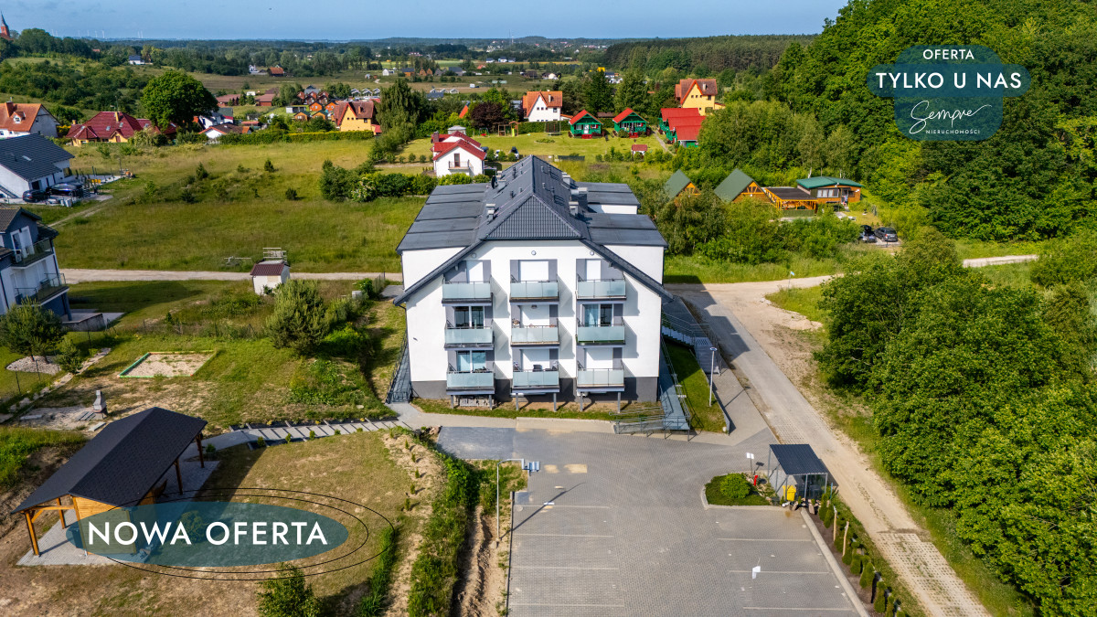 Apartament znajduje się w kameralnym, dwupiętrowym budynku, na 1. piętrze, w cichej i spokojnej okolicy – z dala od wakacyjnego zgiełku, a jednocześnie blisko wszystkich atrakcji nadmorskich. Teren wokół budynku jest zadbany, a każdy lokal posiada przypisane miejsce parkingowe, co znacząco podnosi komfort codziennego użytkowania i wypoczynku.