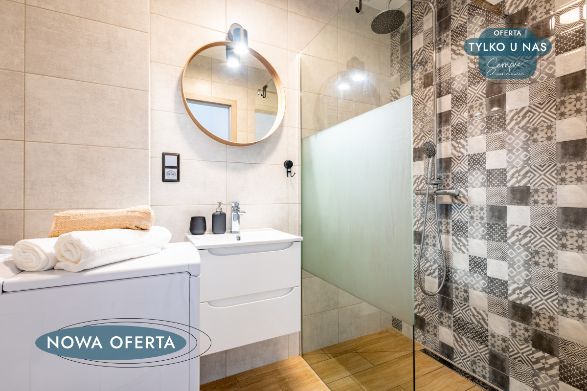 • Nowoczesna łazienka z kabiną prysznicową i ogrzewaniem elektrycznym,