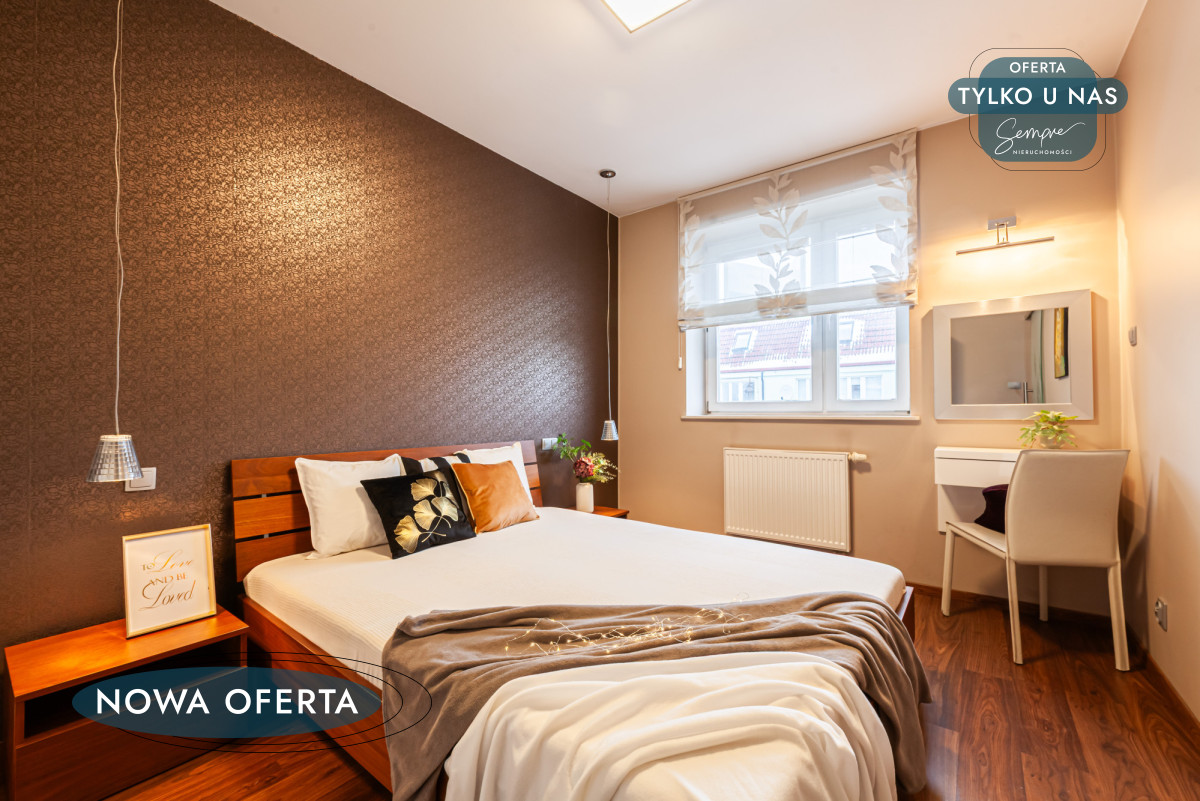 Całość utrzymana jest w neutralnym, uniwersalnym stylu, który łatwo dopasować do własnych gustów — bez kosztownych zmian i remontów. Mieszkanie sprzedawane jest w pełni umeblowane i wyposażone, co pozwala wprowadzić się od razu, bez dodatkowych nakładów finansowych. Do lokalu przynależy również duża komórka lokatorska (7,6 m²), zapewniająca wygodną przestrzeń do przechowywania.