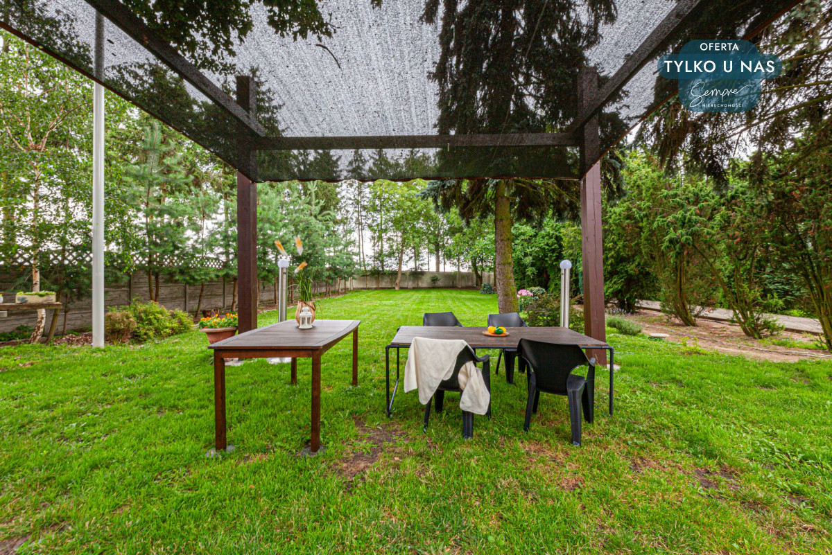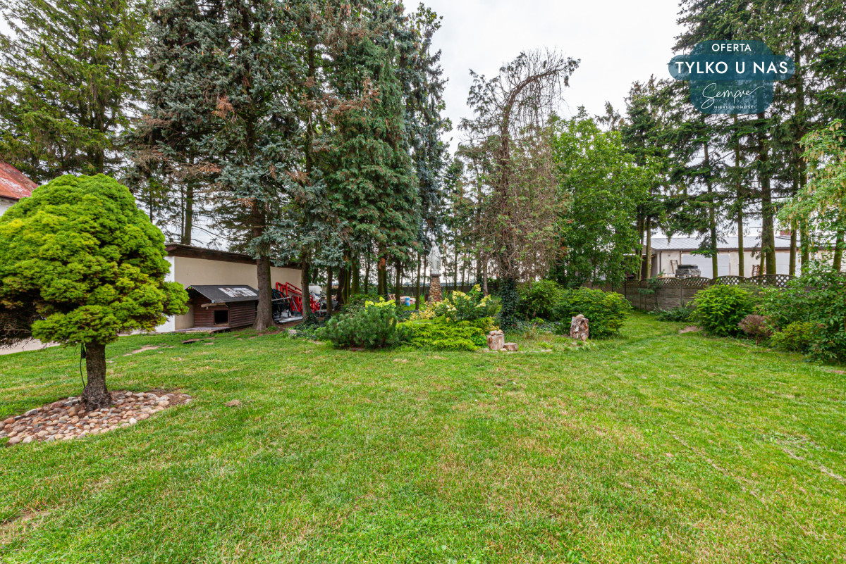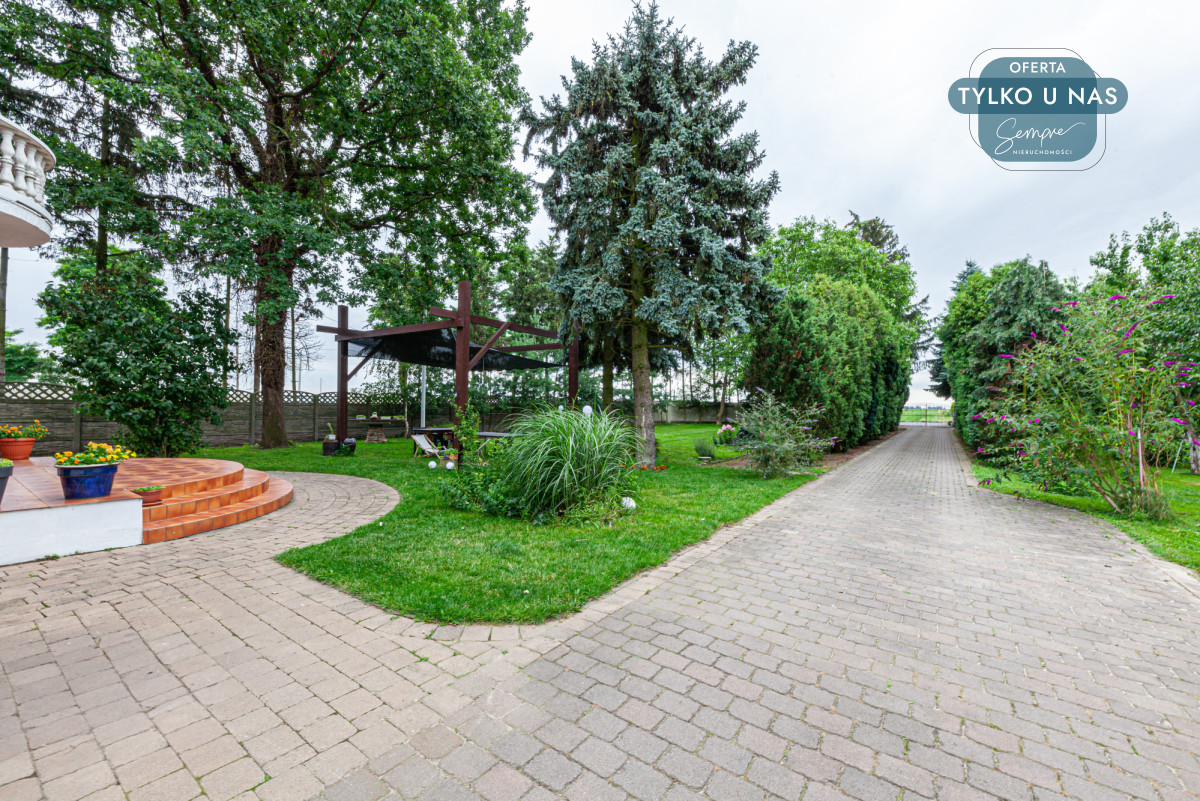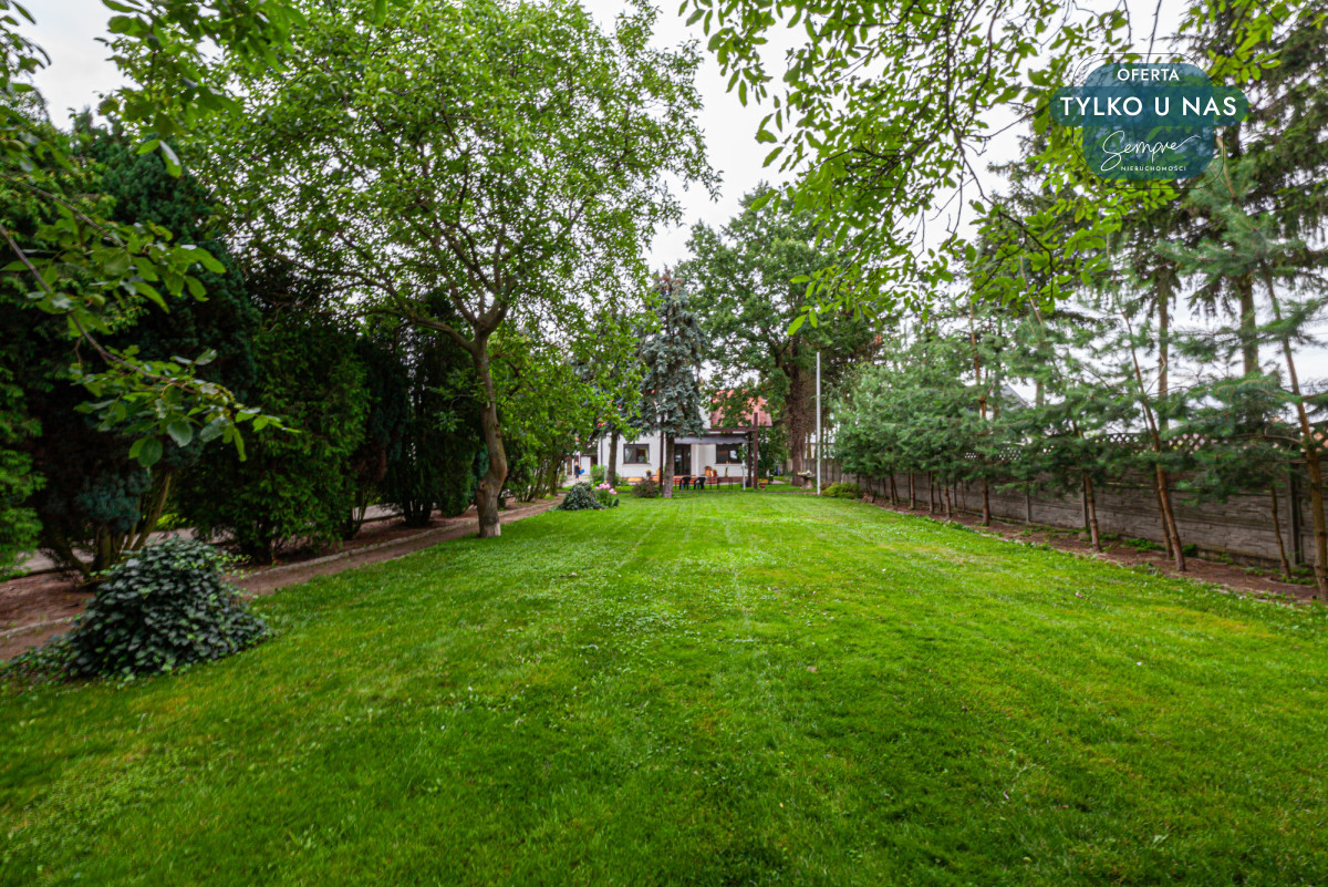 Posiadłość otoczona jest przepięknym, dużym ogrodem o powierzchni około 4000 m². W ogrodzie rosną dorodne świerki i zadbane krzewy, tworząc prawdziwie bajkową atmosferę. Posadzono również drzewa owocowe. Rozprowadzono automatyczne podlewanie.