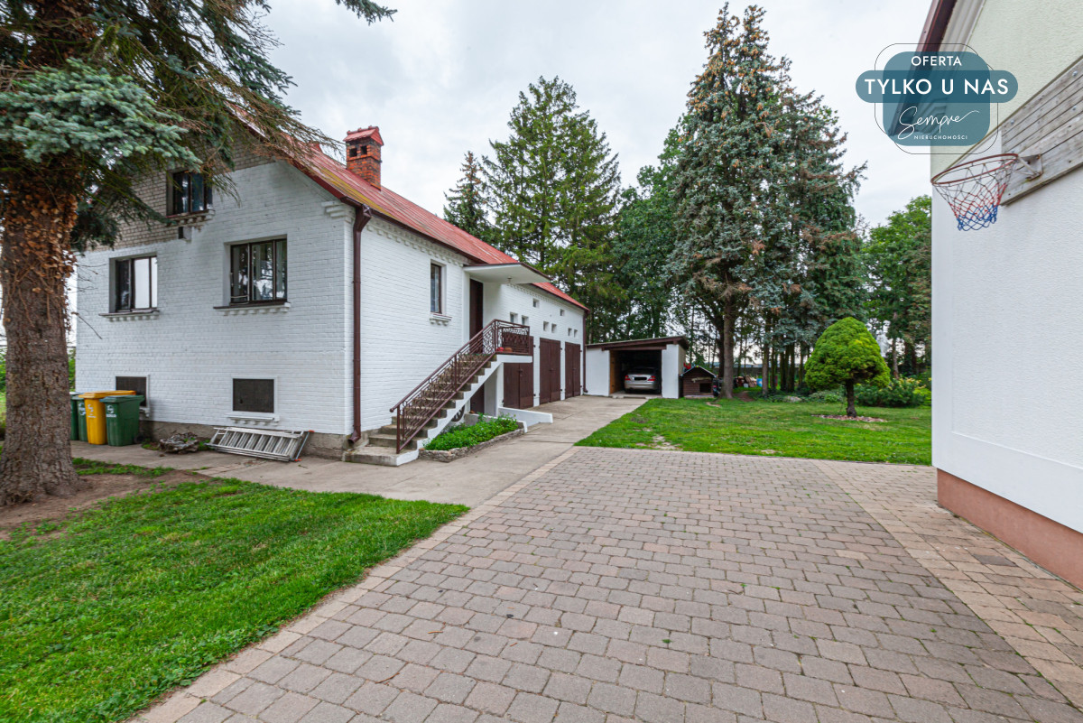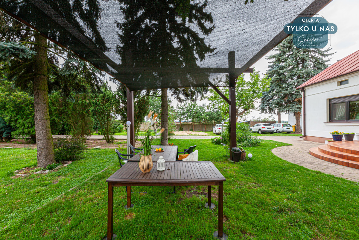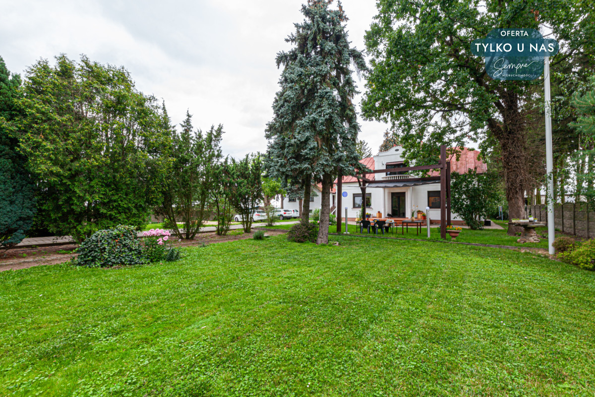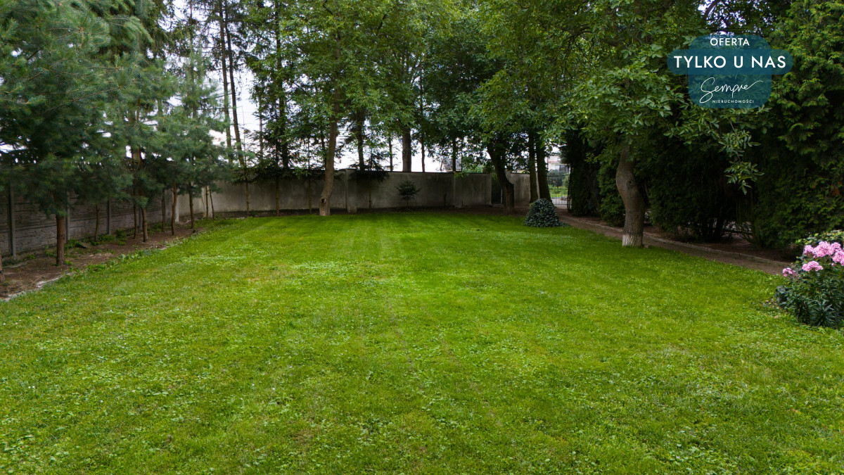 Posiadłość otoczona jest przepięknym, dużym ogrodem o powierzchni około 4000 m². W ogrodzie rosną dorodne świerki i zadbane krzewy, tworząc prawdziwie bajkową atmosferę. Posadzono również drzewa owocowe. Rozprowadzono automatyczne podlewanie.