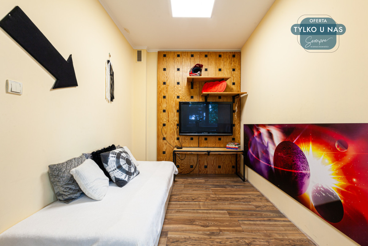 Obok salonu znajduje się pokój (18,30 mkw), który obecnie zajmowany jest przez nastolatków.