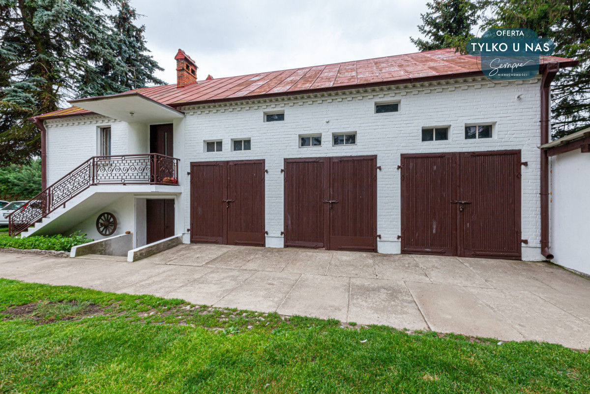 Do nieruchomości przynależy również obszerny budynek gospodarczy z pokojami mieszkalnymi oraz trzema garażami, a także niezwykły ogród o powierzchni około 0,4 ha.