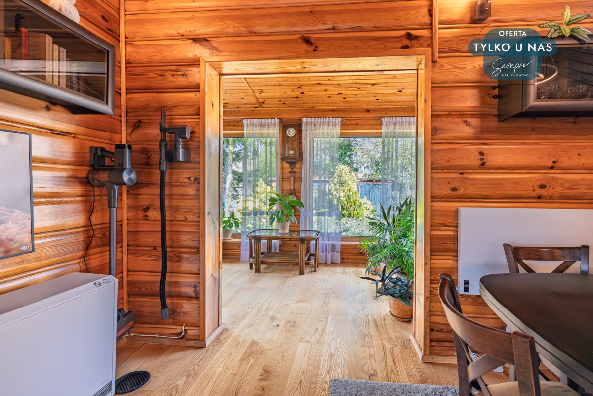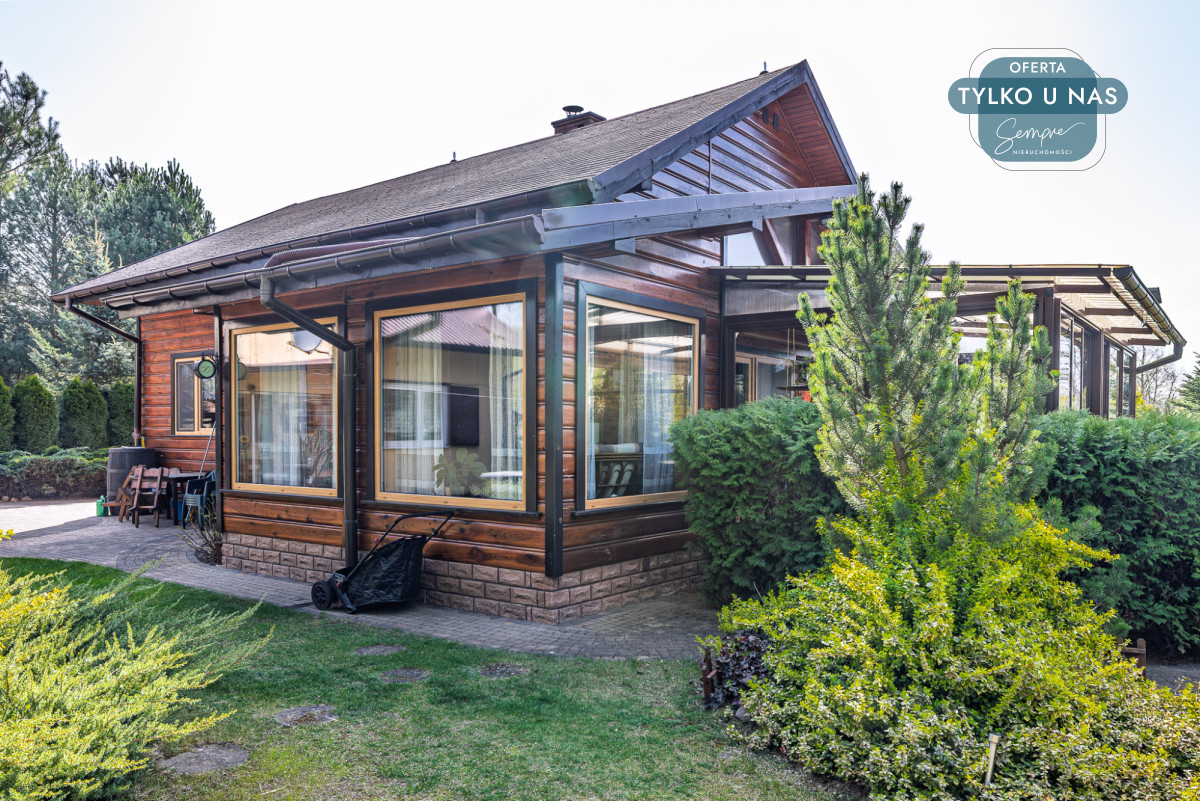 Dom z półbali o powierzchni użytkowej 107,05 m² to doskonałe połączenie tradycyjnego rzemiosła z nowoczesnymi technologiami. Zbudowany z naturalnego drewna i ocieplony wełną mineralną, zachowuje ciepło zimą i przyjemny chłód latem. Dach dwuspadowy został pokryty gontem bitumicznym, co harmonijnie wpisuje się w zielone otoczenie, a trzyszybowe okna nie tylko rozświetlają wnętrze, ale też skutecznie izolują od świata zewnętrznego. Budynek został odebrany w 2012 roku.