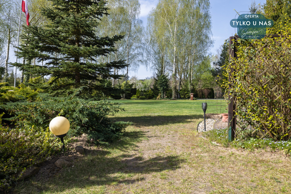 Na posesji znajduje się także uroczy domek letniskowy, który świetnie sprawdzi się jako miejsce dla gości, przestrzeń do wynajęcia lub prywatne studio. Ogród wypełniają liczne nasadzenia ozdobne – krzewy, byliny, trawy i kwiaty tworzące kompozycje, które zmieniają się z porami roku, niczym żywy obraz.