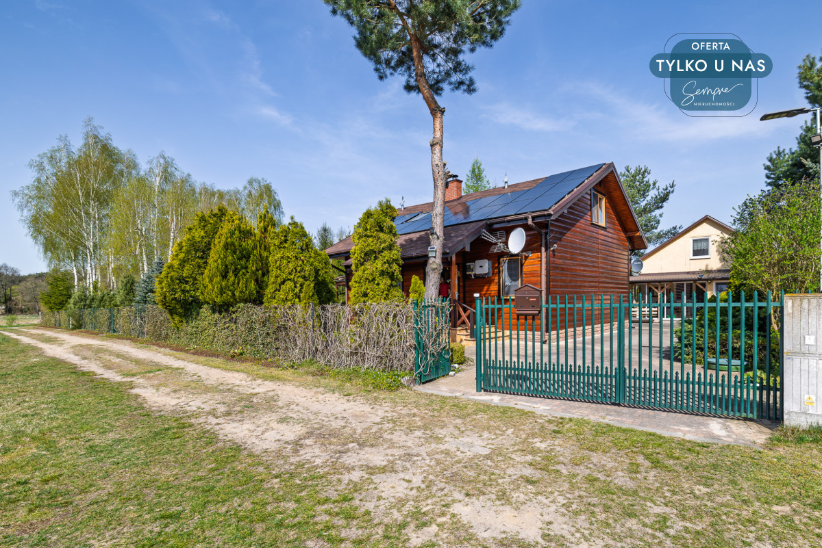 Energię do życia czerpie ze słońca — dosłownie. Nowoczesna instalacja fotowoltaiczna znacząco obniża rachunki za prąd, a kominek w salonie dodaje wnętrzu klimatu, który trudno opisać — trzeba go poczuć.
