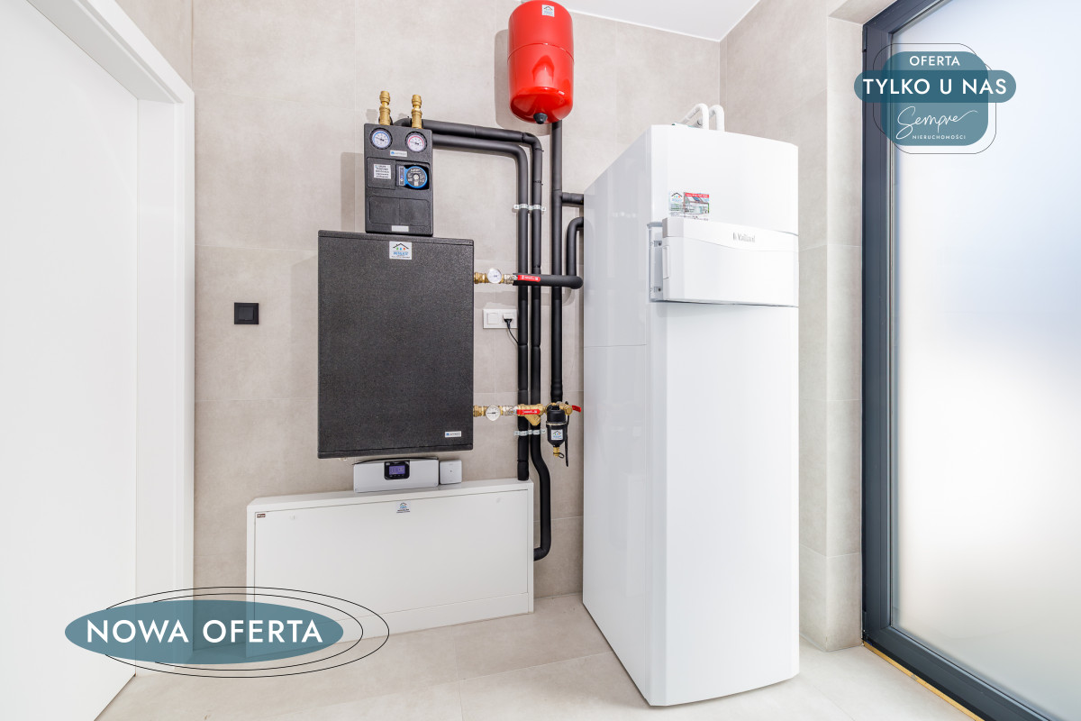 Rezydencja wyposażona jest w nowoczesny system ogrzewania i chłodzenia oparty na pompie ciepła Vaillant aroTHERM Split 6,7 kW, renomowanego niemieckiego producenta.
