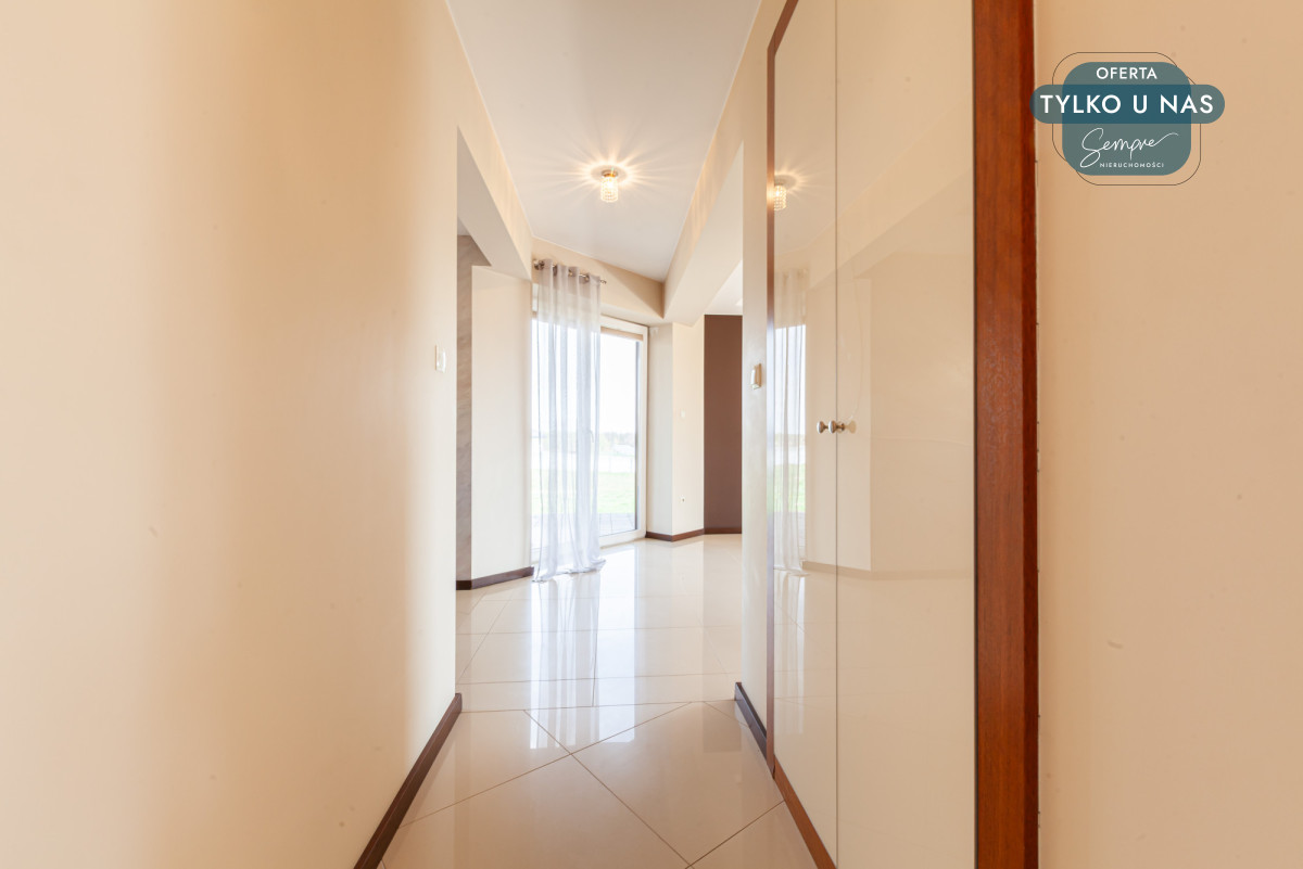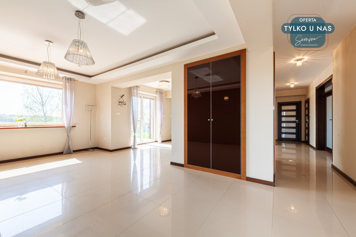 - Obszerny salon z dwoma wyjściami na tarasy.