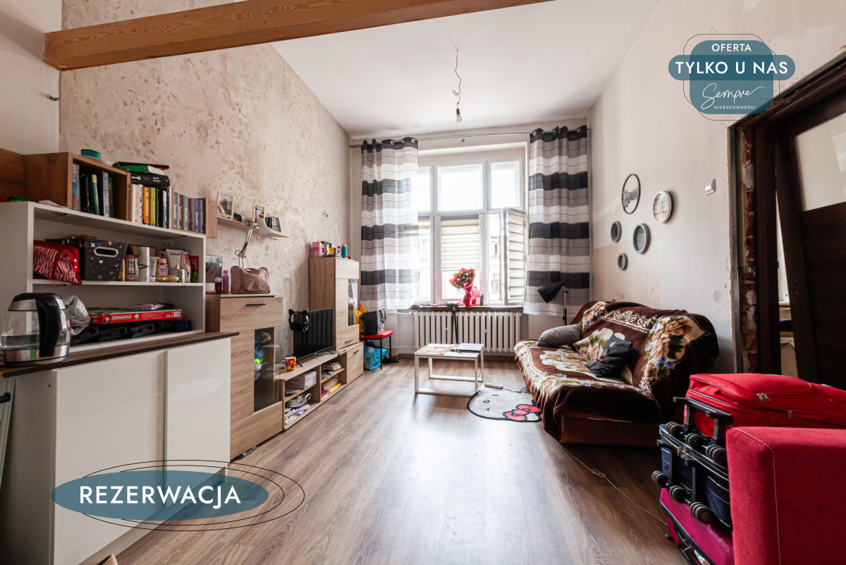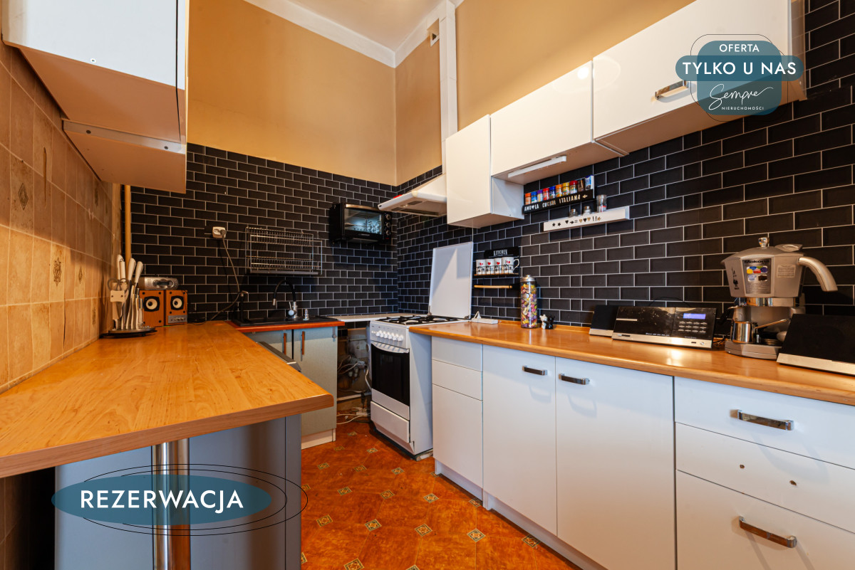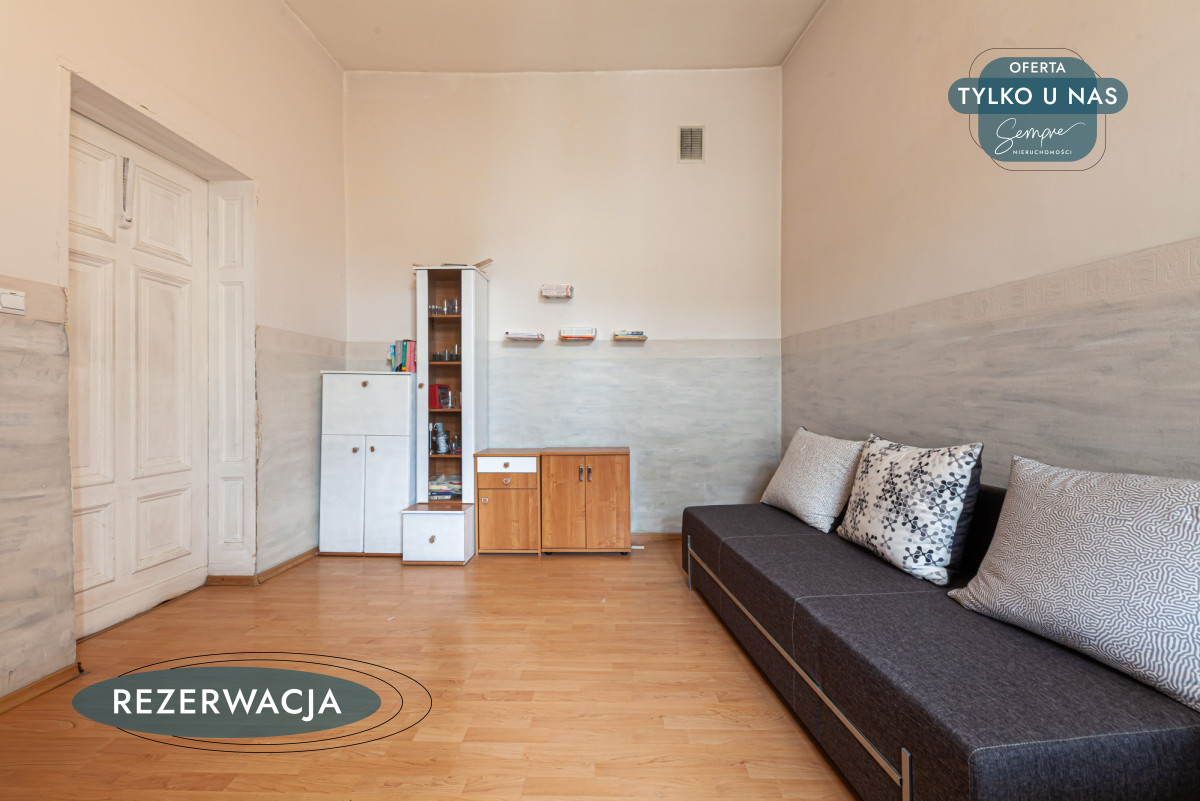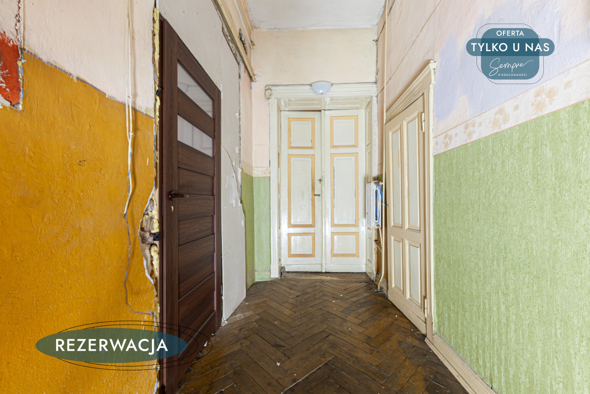 - 3 pomieszczenia: salon z aneksem kuchennym, sypialnia i mniejsza łazienka zostały odświeżone na przestrzeni lat, reszta jest do generalnego remontu (urządzasz jak chcesz, duża powierzchnia daje ogromne pole do popisu).