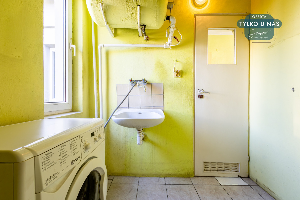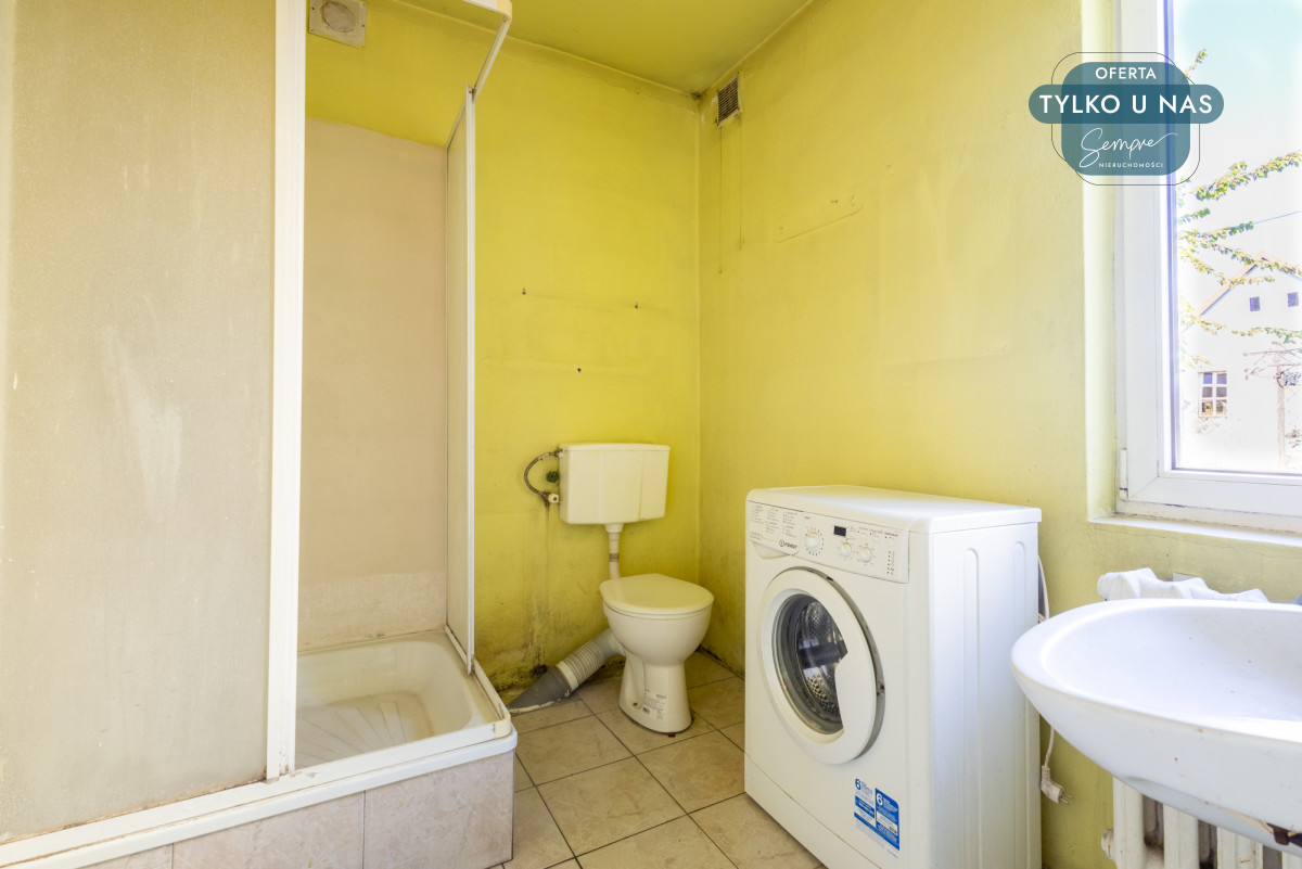 - Łazienka z prysznicem i pralką