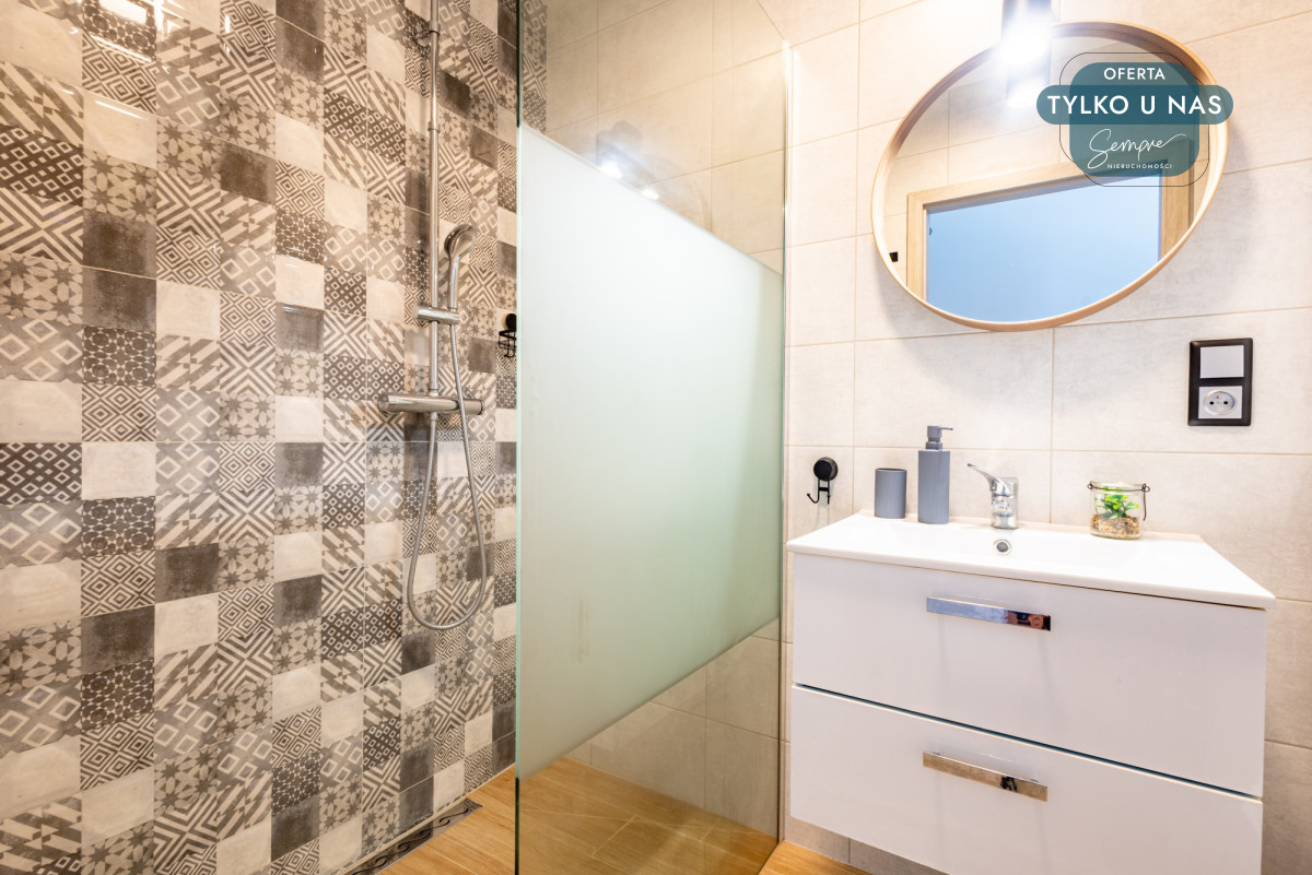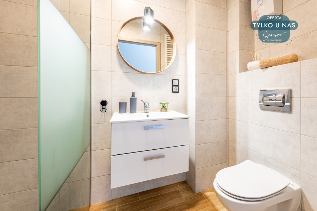 - funkcjonalną łazienkę z kabiną prysznicową i elektrycznym ogrzewaniem,