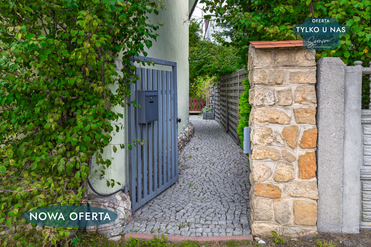 Do nieruchomości prowadzi malowniczy chodnik wśród zieleni, który tworzy aurę tajemniczości i już od progu wprowadza w klimat południowych domów. Ozdobny kamień na elewacji dodaje całości wyjątkowego uroku i sprawia, że budynek wyróżnia się na tle innych.