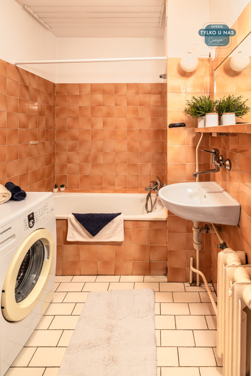 – Łazienka z wanną, umywalką, pralką i osobne WC.