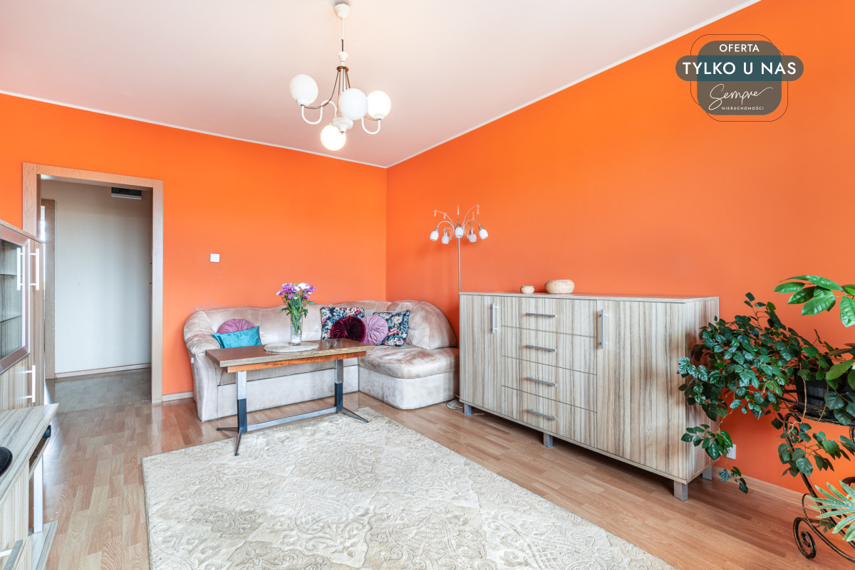 – Przestronny i jasny pokój dzienny z wyjściem na balkon typu loggia.