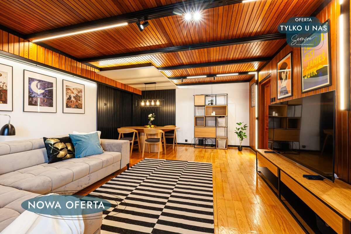 W 2024 roku mieszkanie przeszło gruntowny remont, który nie próbował zgasić jego charakteru. Wręcz przeciwnie — miał go podkreślić. I zrobił to znakomicie. Odświeżona boazeria nadaje wnętrzom tej wyjątkowej miękkości, której nie da się podrobić współczesnymi materiałami. To idealne połączenie retro i nowoczesności — eleganckie, nastrojowe, jedyne w swoim rodzaju.