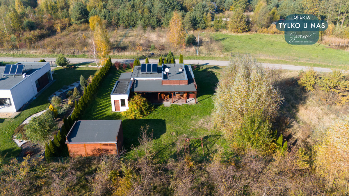 Działka jest starannie zagospodarowana – gustowne nasadzenia roślin podkreślają urok przestrzeni, a jednocześnie tworzą idealne miejsce do relaksu. Cisza, śpiew ptaków oraz bliskość przyrody czynią to miejsce oazą spokoju. W odległości około 200 metrów znajduje się urokliwy staw, a kilka minut drogi dzielą działkę od dwóch malowniczych jezior, które zachęcają do spacerów, wędkowania lub pikników.